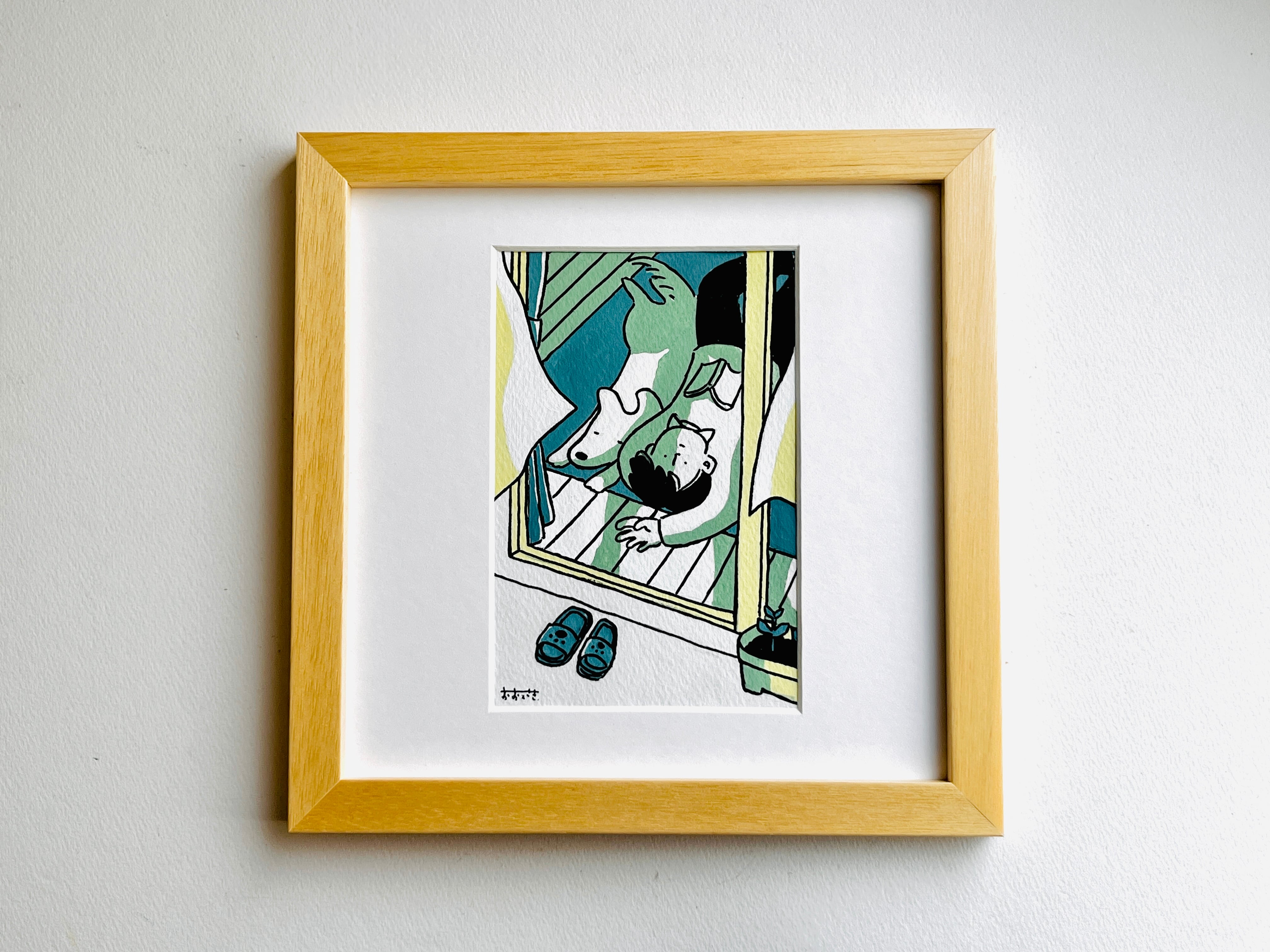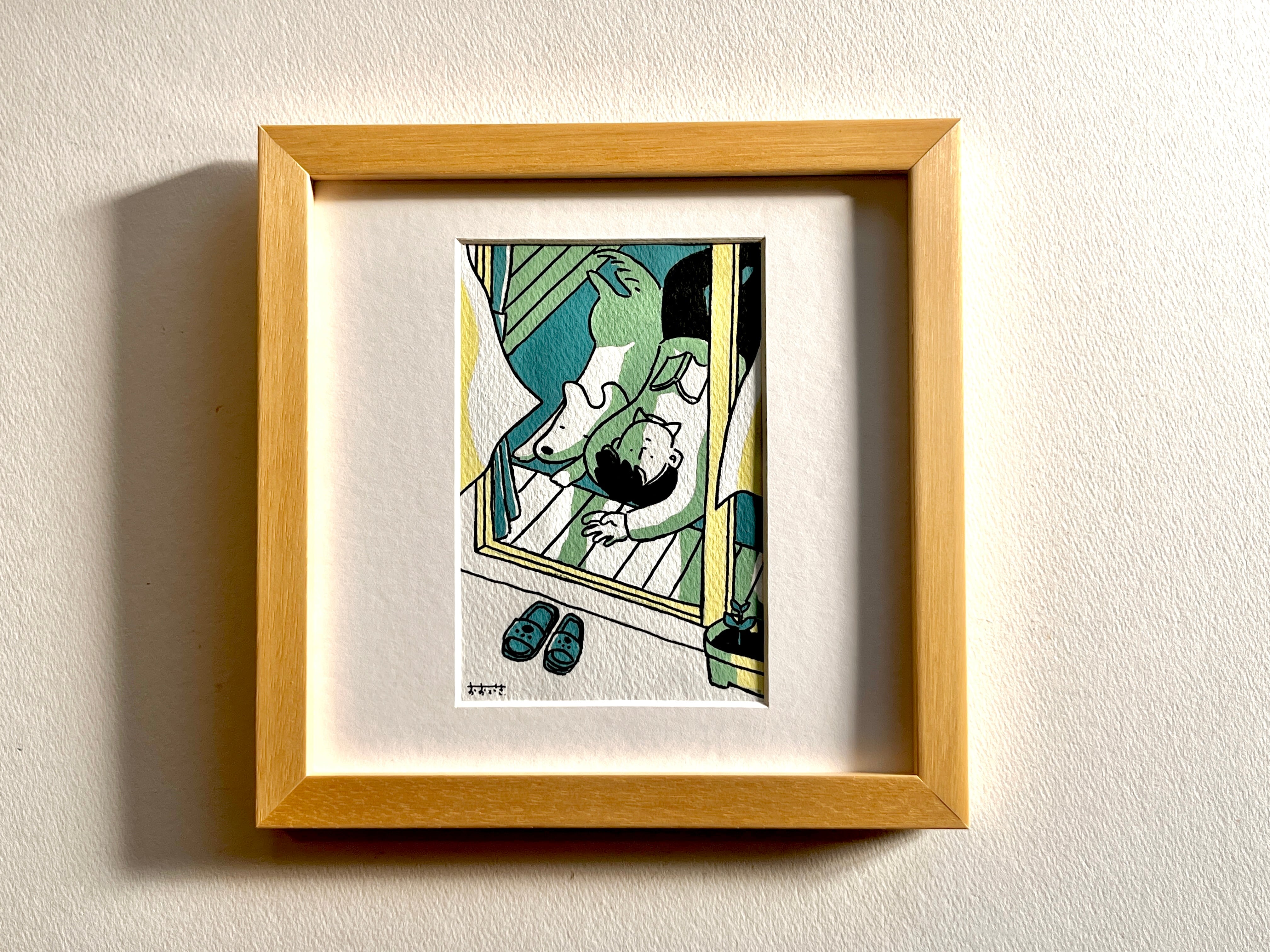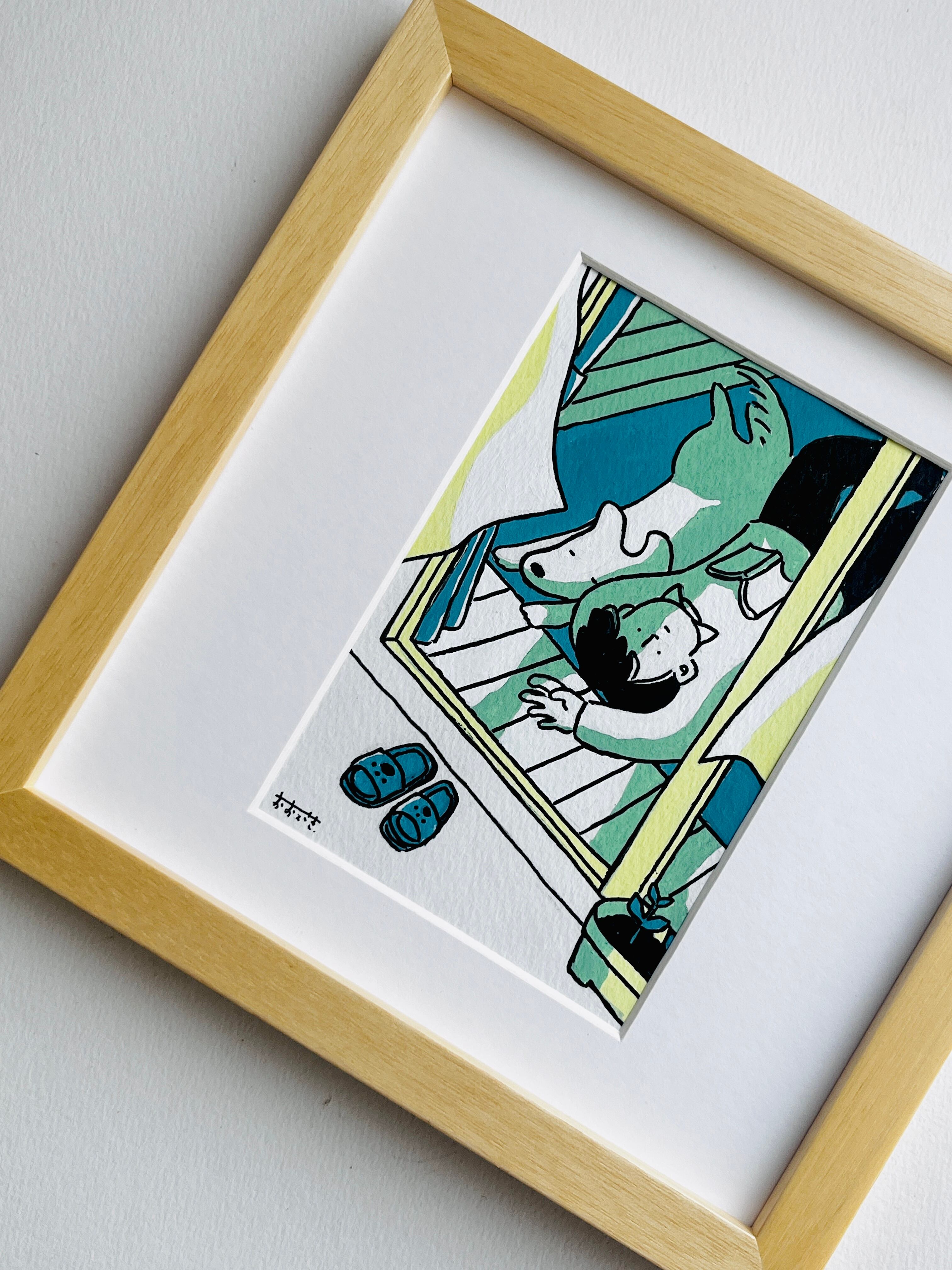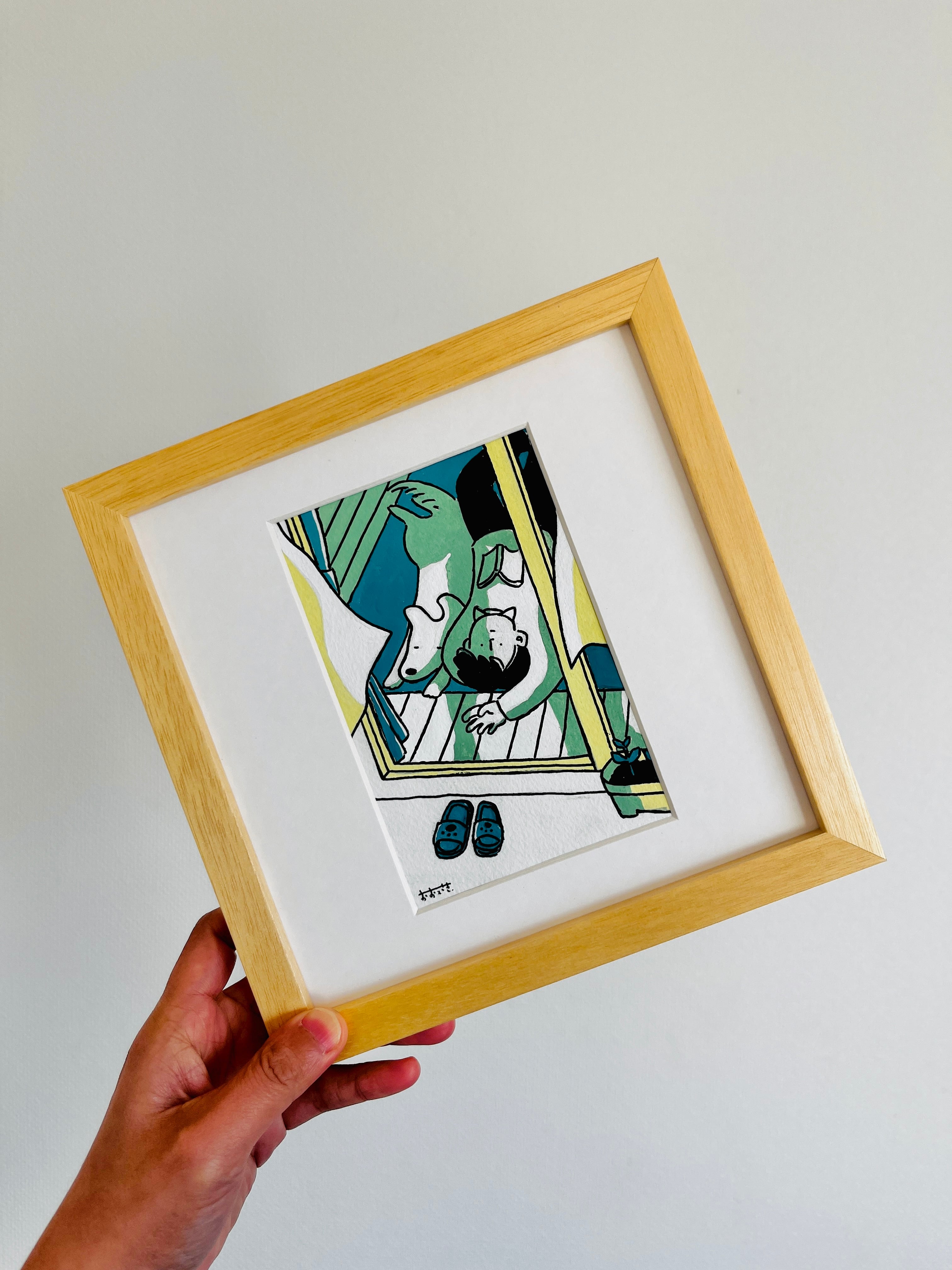 木製フレーム(22cm × 22cm)にいれてお届けします。